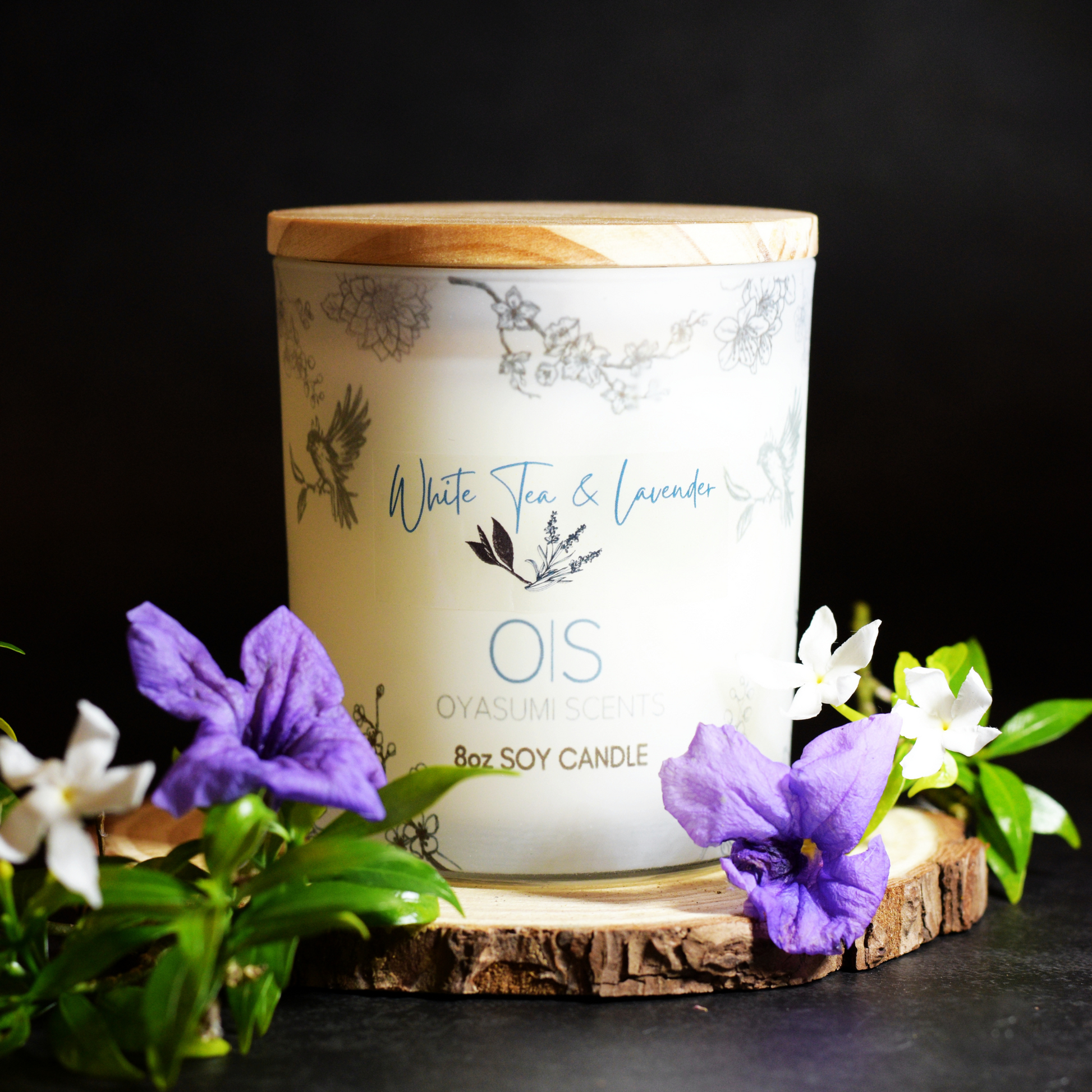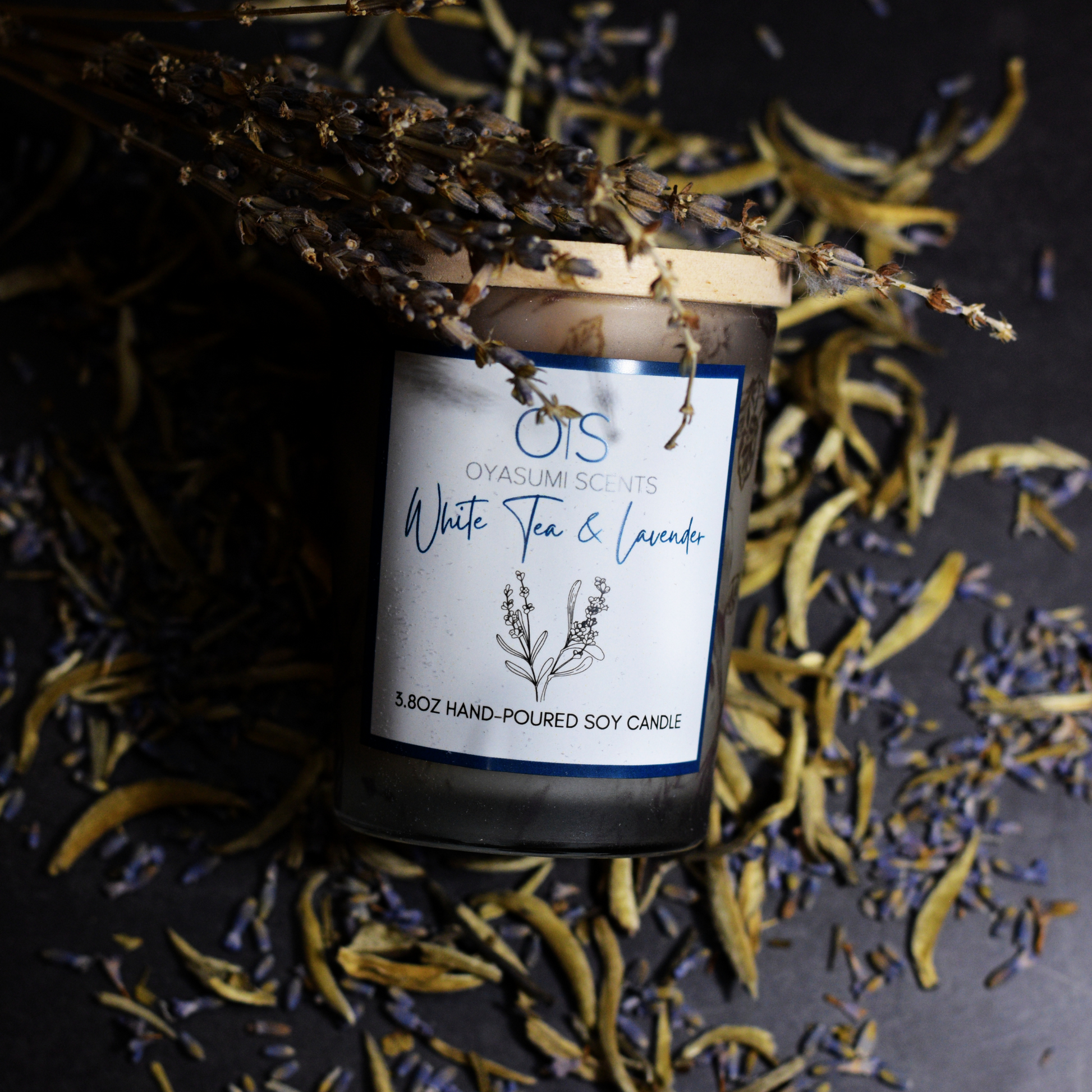 Let the warming scent of white tea soothe you while the spice of lavender calms you. A perfect candle to light after a long and taxing day.